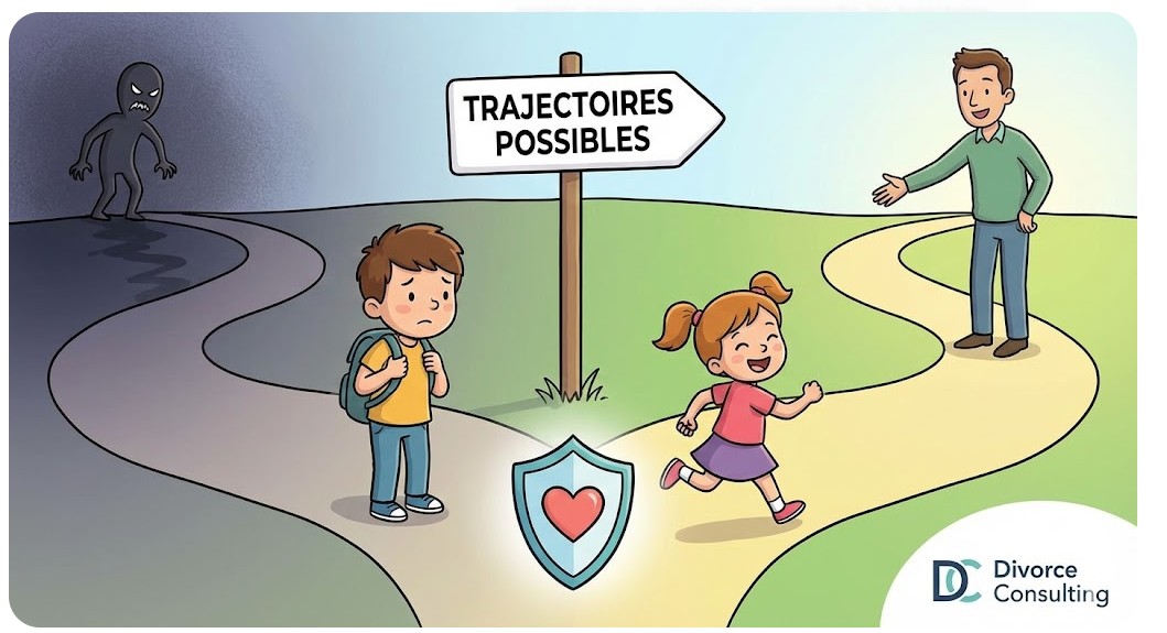Cet article aborde cette problématique en trois volets essentiels : d’abord, nous examinerons l’empreinte traumatique que laisse un parent pervers narcissique sur le développement de ses enfants ; ensuite, nous analyserons les mécanismes psychologiques qui conduisent à ces différentes trajectoires de vie, en soulignant le rôle déterminant du parent protecteur ; enfin, nous proposerons des solutions concrètes de protection pour préserver ces enfants et favoriser leur reconstruction. Dans ce contexte douloureux de séparation, l’expertise de Divorce Consulting, fondée sur l’intelligence émotionnelle, peut s’avérer déterminante pour accompagner les familles vers un avenir plus serein.